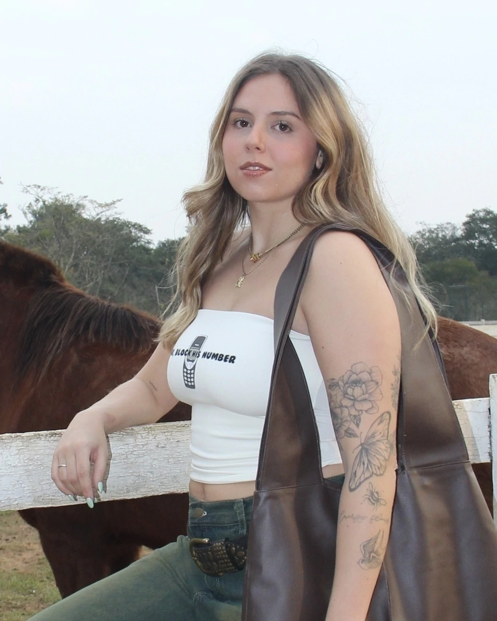 - Confeccionado em algodão com elastano o BLOCK HIS NUMBER TUBE TOP possui uma estampa super cool em silk