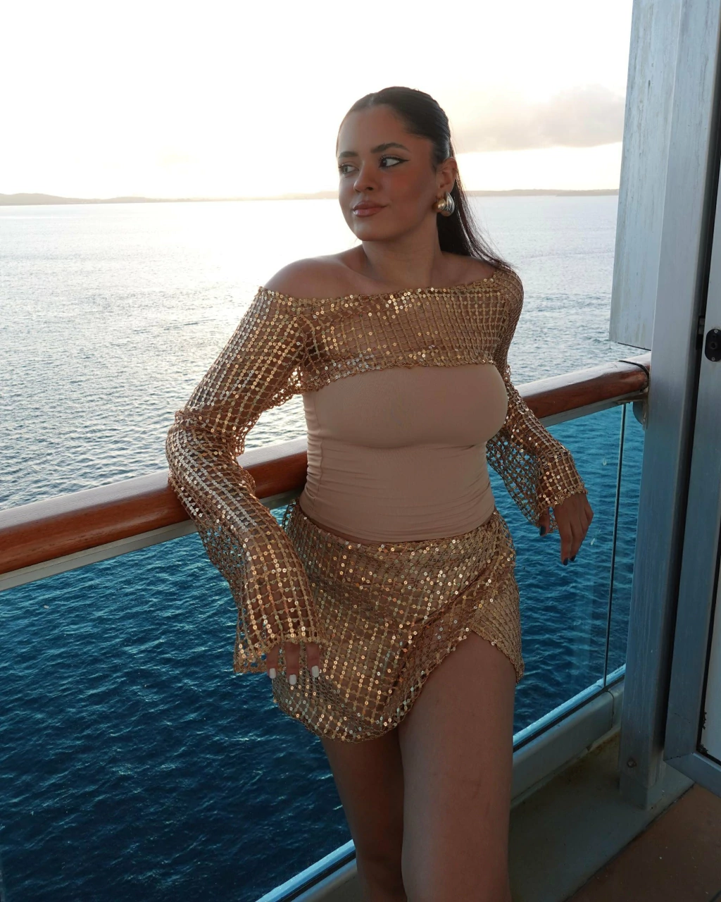 - Saia envelope confeccionado em tela bordada de paetê, trazendo para essa peça muito brilho e texturas, conta com forro de suplex!